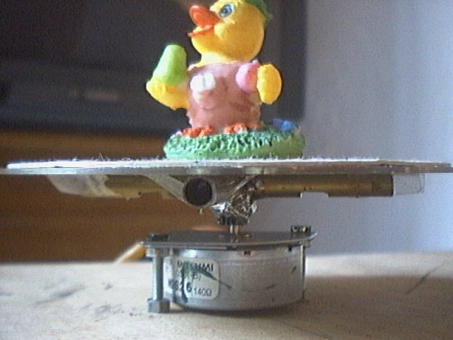 More pictures: laser diode in action, laser with its cone used to reduce light diffusion, view of all the scanner with the duck on it.